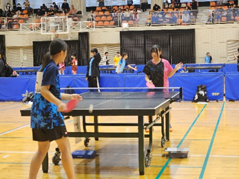 団体戦での出場は今回が初めてです。予選敗退しましたが、ダブルスの試合では5ゲームまで進みセットを取る、取られるというハラハラドキドキする展開のゲームができました。