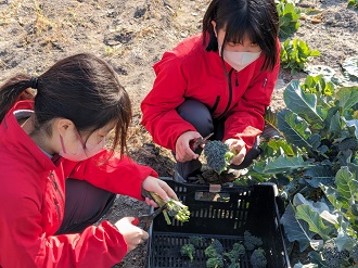 今日の総合実習では、今が旬!栄養価も満点な「ブロッコリー」の収穫と商品化を行いました。